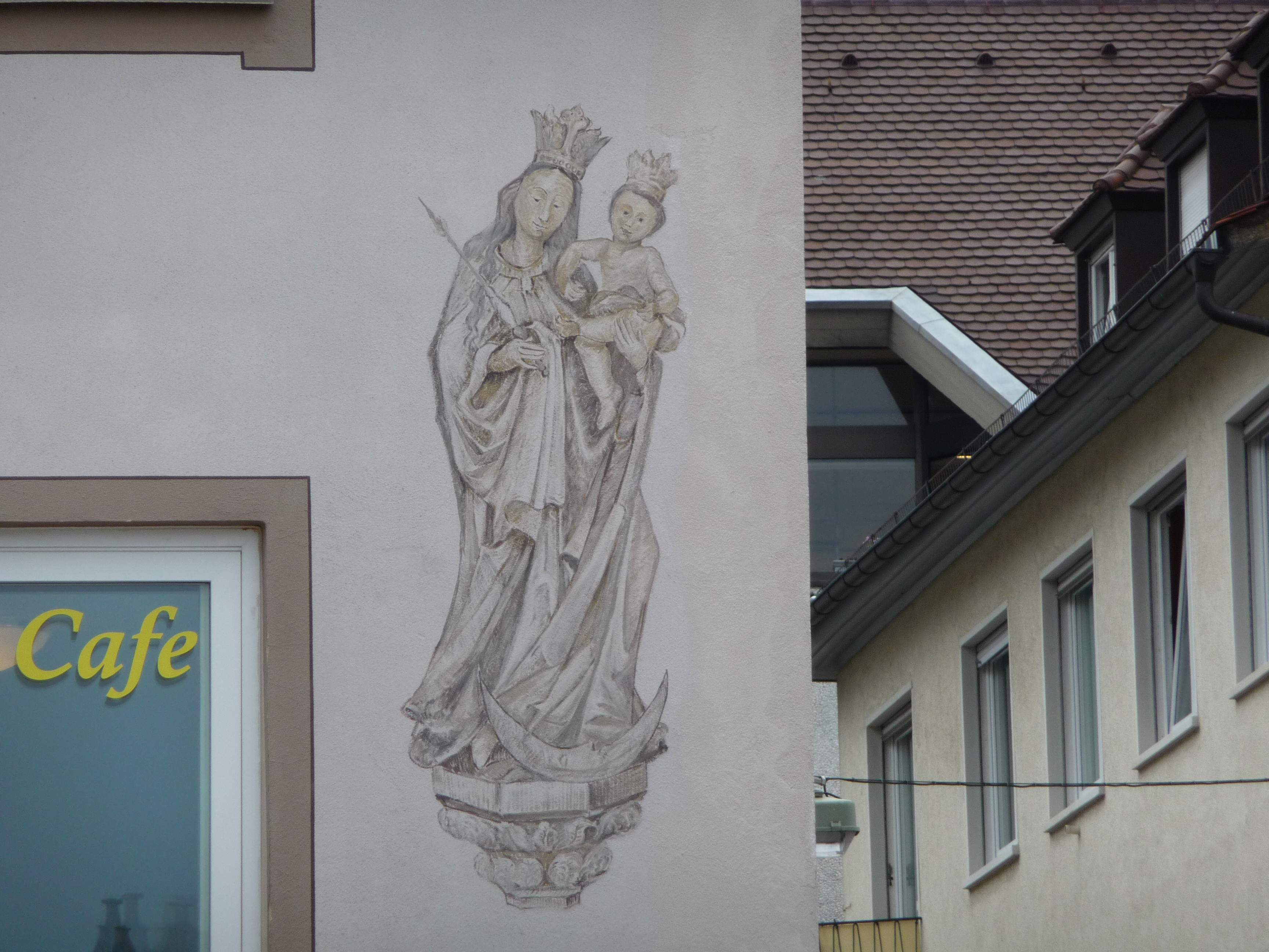 Marienstatue an einem Haus in Miltenberg ...