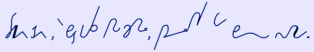 (Es ist Eilschrift, eine höhere Stufe der DEK, in der viele Wörter nur aus einem einzelnen Zeichen bestehen, so dass es möglich ist, bei geeignetem, ständigen Training 200 Silben pro Minute und mehr zu stenografieren. Dabei steht es jedem frei, für häufig vorkommende Wörter in seinem Bereich eigene "Kürzel" zu erfinden, was ich hier zum Teil getan habe.)