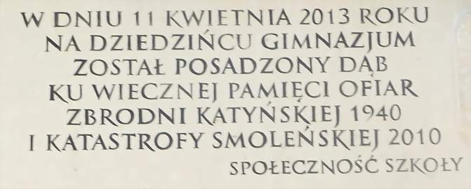 "Am 11. April 2013 wurde im Hof des Gymnasiums eine Eiche zum ewigen Gedenken