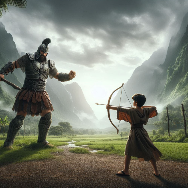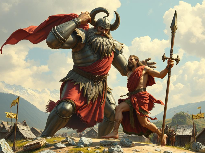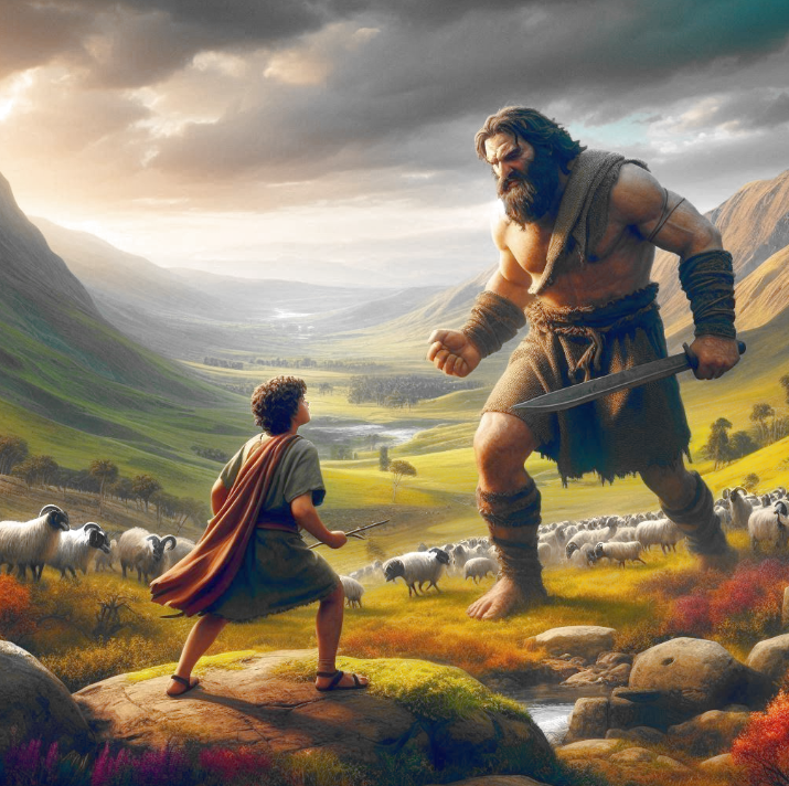 Dies zeigt sich zum Beispiel bei der Darstellung der Geschichte von David und Goliath. (Stand August 2025)