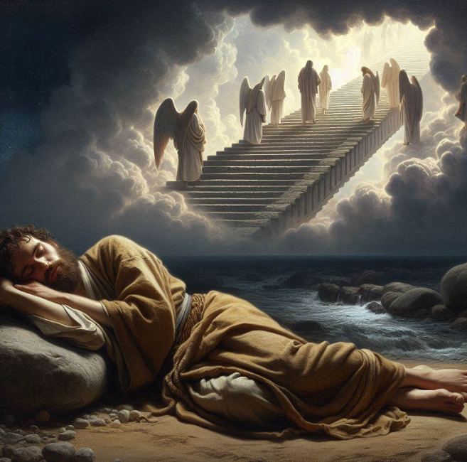 Zwei mit Künstlicher Intelligenz erzeugte Bilder zu Jakobs Traum (2025)1