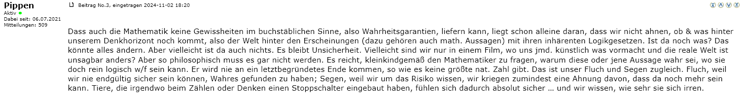 Zitate aus einer Diskussion über Mathematik und Wahrheit auf dem Matheplaneten