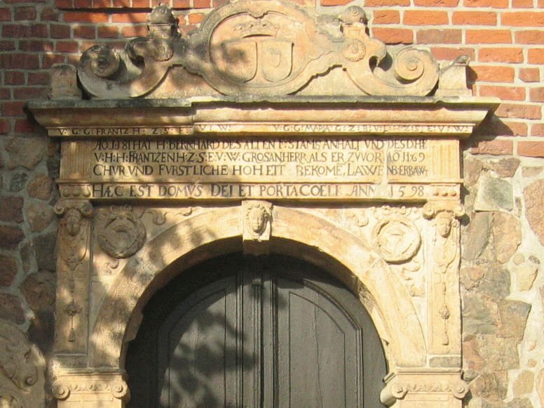 Bild© : Ev. Maria-Magdalenen-Kirche, Lauenburg/Elbe; Portalinschrift (siehe auch 1. Mose 28,17):
