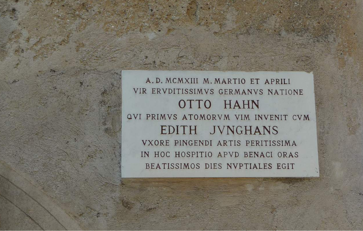 ihre Flitterwochen. (Anmerkung: Der Teilsatz "qui primus atomorum vim invenit" ist irreführend. An der Entdeckung der Kernspaltung, für die Hahn den