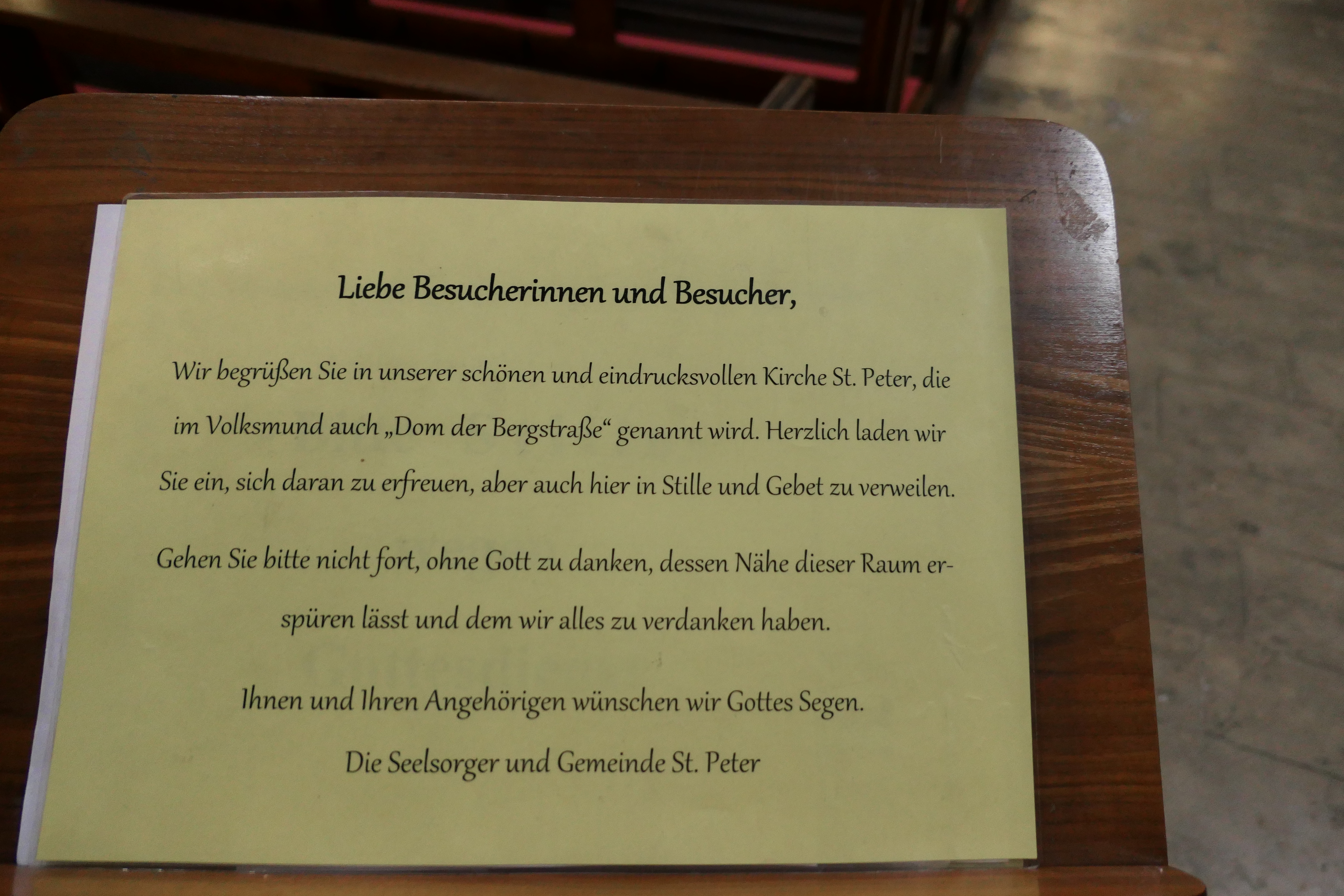 (im Eingangsbereich der Pfarrkirche St. Peter Heppenheim)