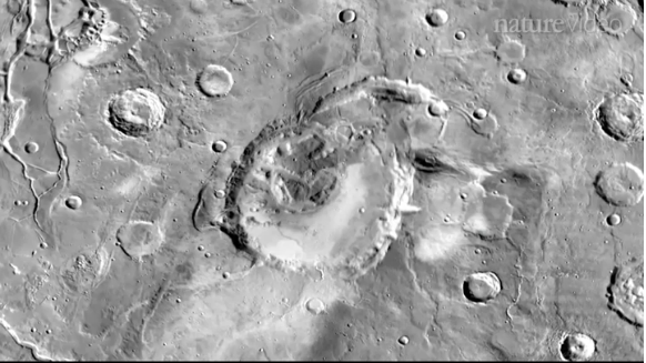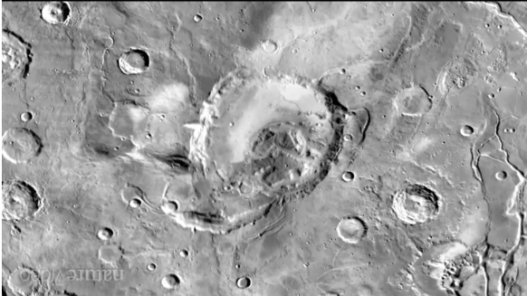 Eine andere optische Täuschung ist häufig auf Fotos fremder Himmelskörper mit Spuren von Meteoreinschlägen oder früheren Vulkanausbrüchen zu sehen, wie zum Beispiel hier: