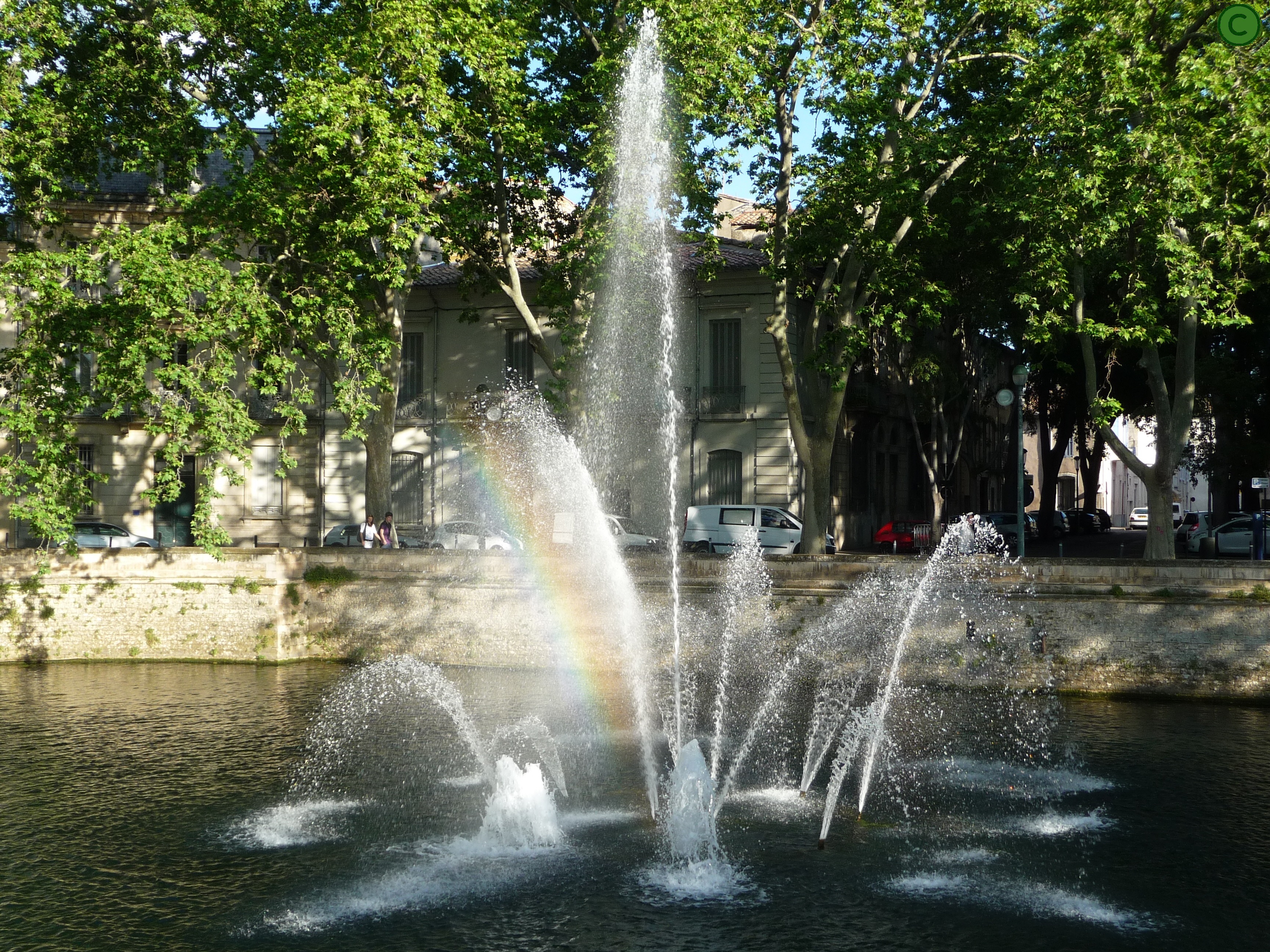 Dekoratives Versprühen von DHMO bei seitlich einfallendem Sonnenlicht