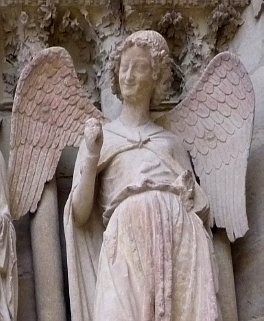 Und hier wieder etwas Heiteres mit tragischem Hintergrund: "Lächelnder Engel" an der Kathedrale von Reims: