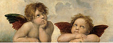 Engel sind übernatürliche Wesen, die seit Jahrtausenden die Phantasie und Glaubensvorstellungen der Menschen beflügeln. "Beflügeln" kann man wörtlich nehmen, denn oftmals werden die Engel mit großen, herrlichen Schwingen bildlich dargestellt und können fliegen. Es gibt aber auch Gemälde mit Engeln, deren Flügel dafür viel zu klein sind. Der folgende Ausschnitt zeigt zwei Kinderengel am unteren Bildrand von Raffaels "Sixtinischer Madonna" [1]: