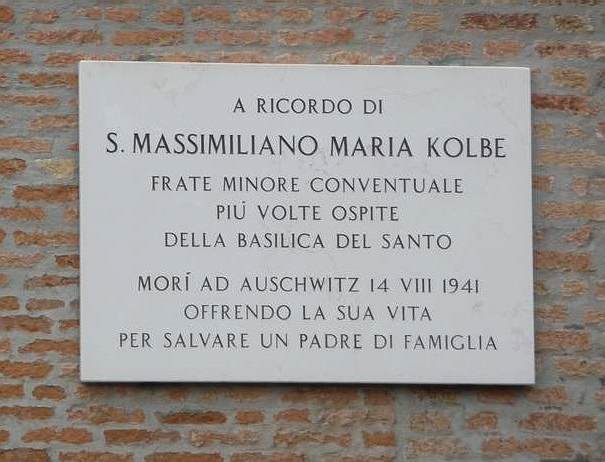Gedenktafel an der Basilica del Santo in Padua für Maximilian Kolbe: