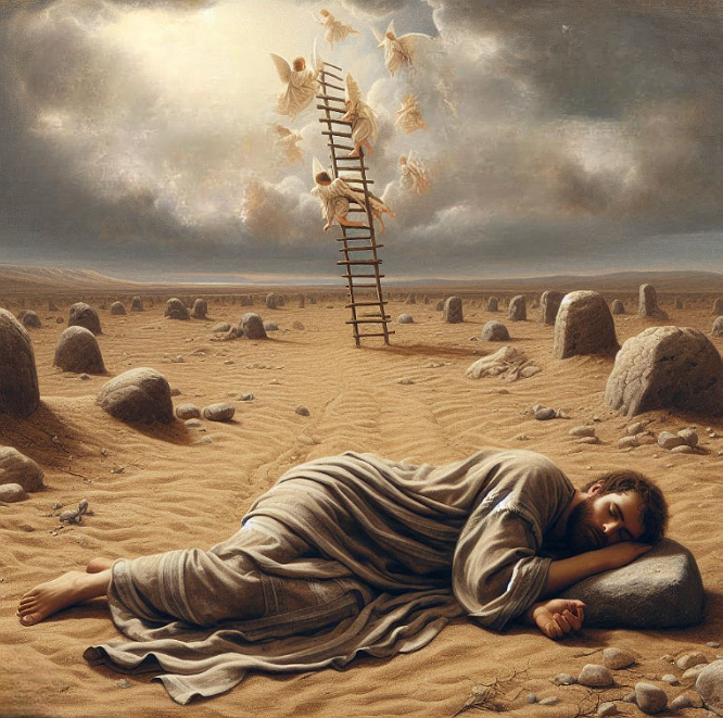 Zwei mit Künstlicher Intelligenz erzeugte Bilder zu Jakobs Traum (2025)1