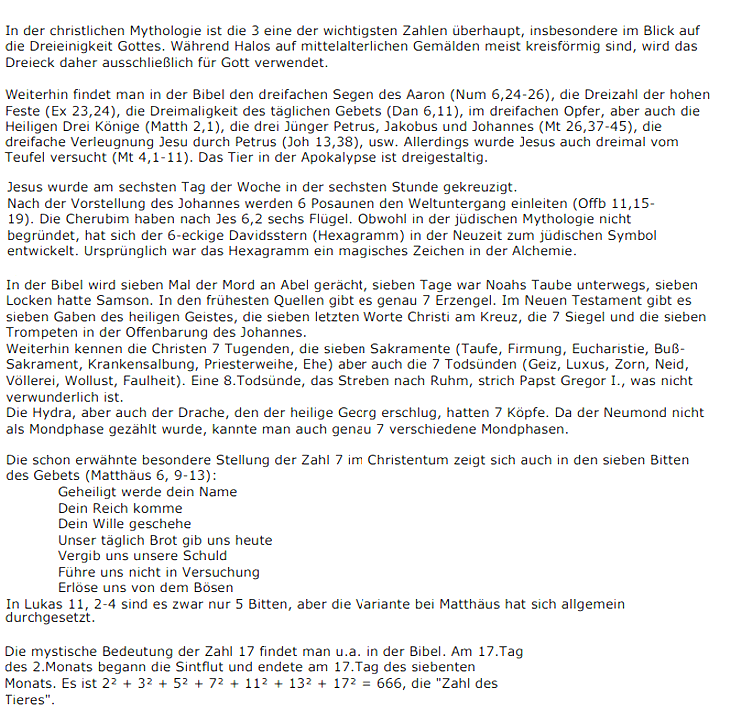 Nachtrag: S. Polsters eigene, sehr reichhaltige, mathematisch-kulturelle Homepage über Zahlen enthält weitere biblische Bezüge, von denen ich einige als screenshots zitiere: