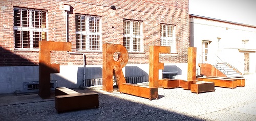 Der Bildhauer Wieland Förster erinnert mit dieser Skulptur im Hof des Gefängnisses an die Opfer zweier Diktaturen. Wer das ehemalige Gefängnis besucht, lernt eine zum Glück überwundene Welt der Unterdrückung, Ausgrenzung und Willkür kennen. Im Hof gibt es Zellen ohne Dächer, in denen Häftlinge isoliert waren und unter ständiger Beobachtung standen.