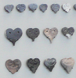 Die dort gezeigten, unter ungünstigen Bedingungen aufgenommenen, herzförmigen Objekte, deren Verwendungszweck mir unbekannt blieb, sind mehrere tausend Jahre alt. Die auf einigen von ihnen erkennbare Kurve erinnert in ihrem unteren Teil an eine Kardioide.
