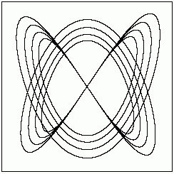Bewegt sich ein Punkt der x,y-Ebene in Abhängigkeit von der Zeit sinusförmig in beiden Achsenrichtungen hin und her, entstehen Lissajous-Kurven unterschiedlichsten Aussehens, von denen zwei hier wiedergegeben seien: