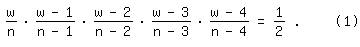 Im Gegensatz dazu beginne ich mit kleinen Zahlen und nehme zuerst versuchsweise an, dass sich unter den n Kugeln in der Tasche nur eine schwarze befindet, s=1, d. h. n=w+1, dann lautet Gl. (1):