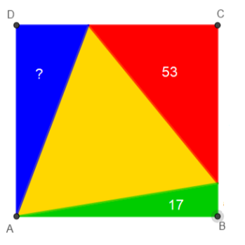 die Flächeninhalte des roten und grünen Dreiecks betragen 53 bzw. 17 Flächeneinheiten.