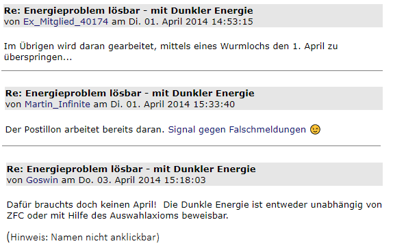 Das Experiment, das vom Fernsehen weltweit übertragen wurde und lokal ständig wiederholt wird, sowie die zusätzlichen Erläuterungen zum Dunkle-Energie-Konverter versetzen die Medien in hektische Betriebsamkeit. Die Zeitungen überschlagen sich vor Begeisterung. Von einem innovativen Quantensprung ist die Rede und von einem Wendepunkt in der Energiekrise – man drückt sich gewählt aus. Dem breiten Publikum wird die Sache so erklärt: dort, wo der Konverter läuft, dehnt sich das Raum-Zeit-Kontinuum und kann energetisch gemolken werden. – Auch das Internet ist seit gestern voll von Berichten und Lobsprüchen. Schon vorher wurde ein professoraler Erfinder auf dem Gebiet, dessen Name an den "Scheinriesen" in einem Kinderbuch erinnert,1,2 in diesem aufgeregt-anmaßenden Brief3 erwähnt; Absender: "das deutsche Volk".