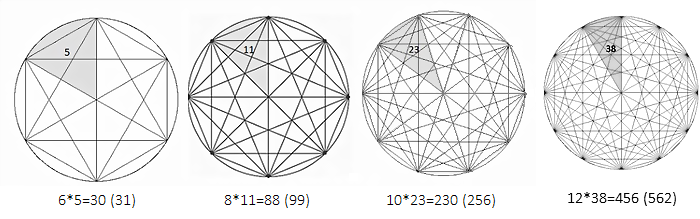 Beim 13-Eck kommt 456 raus, wie jeder hier leicht (*g*) nachzählen kann.