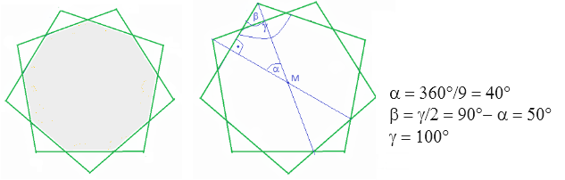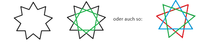 Unter den anderen Sternen gibt es einen mit dem Innenwinkel 100°: den Neunstern: