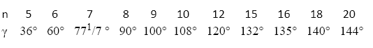 (Die ausgelassenen Eckenzahlen n>10 ergeben wie bei n=7, in Grad gemessenen, keine ganzzahligen Winkel.)