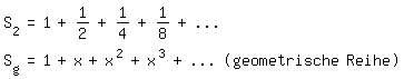 Sg = 1 + x + x2 + x3 + ... dagegen kann man sehr wohl rechnen. Oft wird das bei ihr so gemacht: