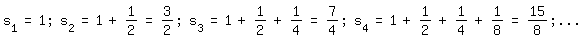 Die k-te Teilsumme ist gleich (2k -1 ) / 2k-1 und geht für k gegen Unendlich gegen 2.