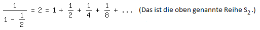 Kehren wir zur geometrischen Reihe Sg zurück und wählen x = -1, ergibt sich mit 1+x+x²+x³+ ... = 1/(1-x):