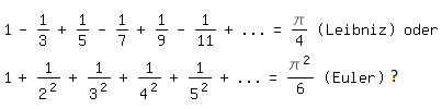 Sehr oft ist es leider nicht möglich, anhand ihrer Teilsummen auf den Summenwert einer unendlichen Reihe zu schließen. Wer würde zum Beispiel damit erraten, dass gilt: