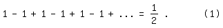 mehrere Summationsarten divergierender unendlicher Reihen vorgestellt, die von der gewöhnlichen Summation (Addition) abweichen. Eine Zeit lang war dort zu lesen: 1 - 1 + 1 - 1 +- ... "=" ½ , mit Anführungsstrichen um das Gleichheitszeichen.