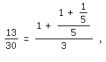 In der ausgedehnten Arbeit [1] über sie ist am Anfang von Abschnitt 2 ("Endliche Kettenbrüche") folgendes Beispiel eines aufsteigenden Kettenbruchs angeführt: