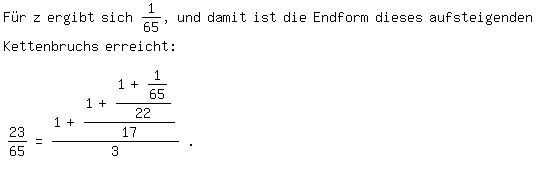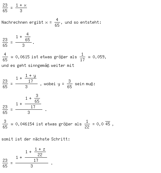 1. Der aufsteigende Kettenbruch unseres letzten Beispiels läßt sich in einer