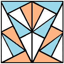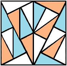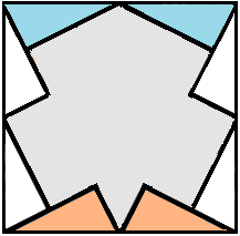 Die Dreiecke, aus denen die Seiten des Quadrats bestehen, können einheitlich zueinander liegen, indem zwei aufeinander folgende, sich berührende Katheten stets einen rechten Winkel einschließen, s. u. Es gibt aber noch zwei andere Möglichkeiten mit den Winkeln 120° und 60°, wie in der folgenden Figur angedeutet: