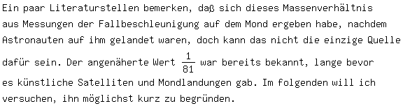 aber nur selten begründeten Massenverhältnisses 1/81