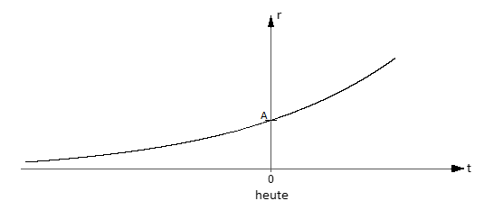mit der Lösung r = A eHt. Graphisch dargestellt (mit H>0) sieht sie so aus: