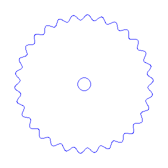 a>0 ist der mittlere Radius des Zahnrades; b, ebenfalls positiv, aber klein gegen a, bestimmt die Größe der Zähne, und n ist ihre Anzahl.