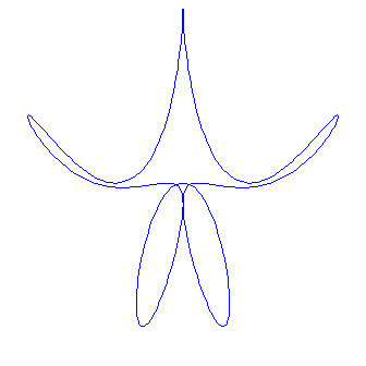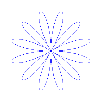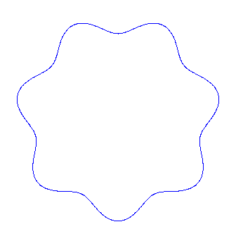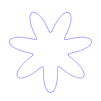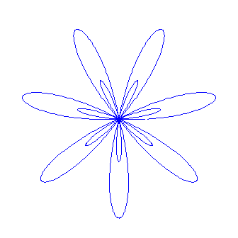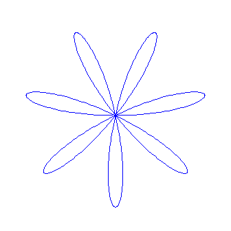 Soll eine gleich große Figur mit einer ungeraden Anzahl von Flügeln, beispielsweise 7, gezeichnet werden, wählen wir n=7, lassen aber den Parameter t nur noch im Bereich 0 bis Pi variieren: