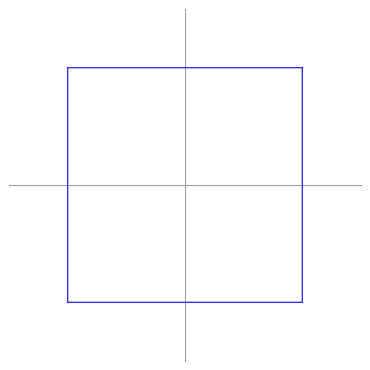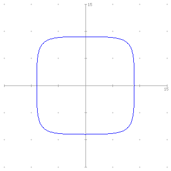 Rebecca hat mit dem fedgeo an anderer Stelle des Matheplaneten ein Zahnrad mit eckigen Zähnen gezeichnet und dazu auch von der hyperbolischen Tangensfunktion Gebrauch gemacht. Mit ihr habe ich ebenfalls ein wenig experimentiert und bin dabei auf das folgende Quadrat gestoßen. Ohne tanh, nur mit sin und cos, entstehen lediglich "Quadrate" mit abgerundeten Ecken wie zum Beispiel dieses: