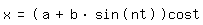 Nun wählen wir a wieder größer als Null und machen b erneut kleiner als 1, aber nicht so klein wie beim Zahnrad. Außerdem soll t wie dort wieder von 0 bis 2*Pi gehen:
