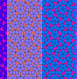 Im Gegensatz zu dem Achteck-Quadrat-Parkett und anderen periodischen Mustern sind Penrose-Parkette unperiodisch. Das heißt: bestimmte Details wiederholen sich zwar ständig, aber dies geschieht nicht regelmäßig. Es gibt dafür kein klares, leicht erkennbares Schema.